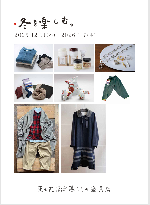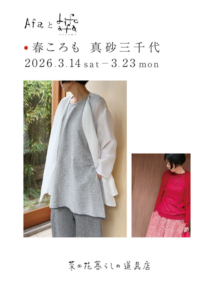草木でこっくりと染めた糸を織り込み、シルクやウールの 衣やストールに仕立てました。ヒマラヤウールでふっくら と織り上げたケープベストや腰巻き、かけ布は、あたたかく 身体を包み込みます。定番のブラウスやスカート、重宝する 羽織りものも取り揃えました。 いつものmaki布に、この冬は色と工夫を添えて──。 季節をまとう布衣をご紹介いたします。